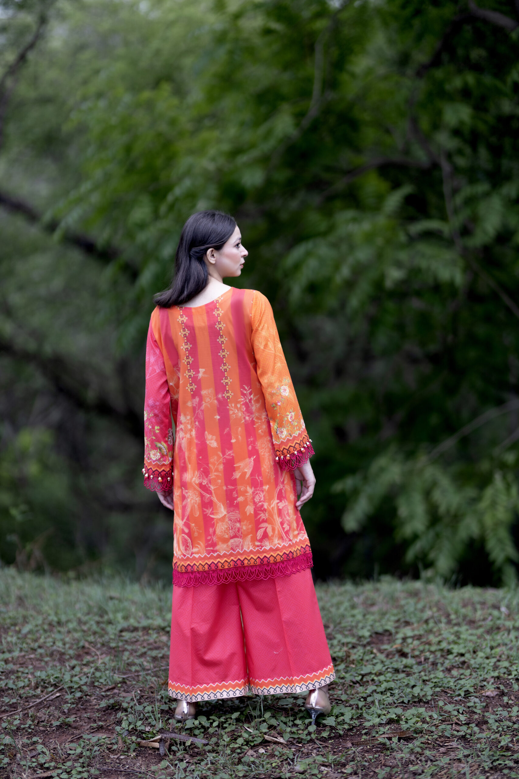 Meri Lado 2 Piece Luxury Printed Lawn Suit. This radiant outfit captures the warmth of summer with a bold, eye-catching blend of fiery