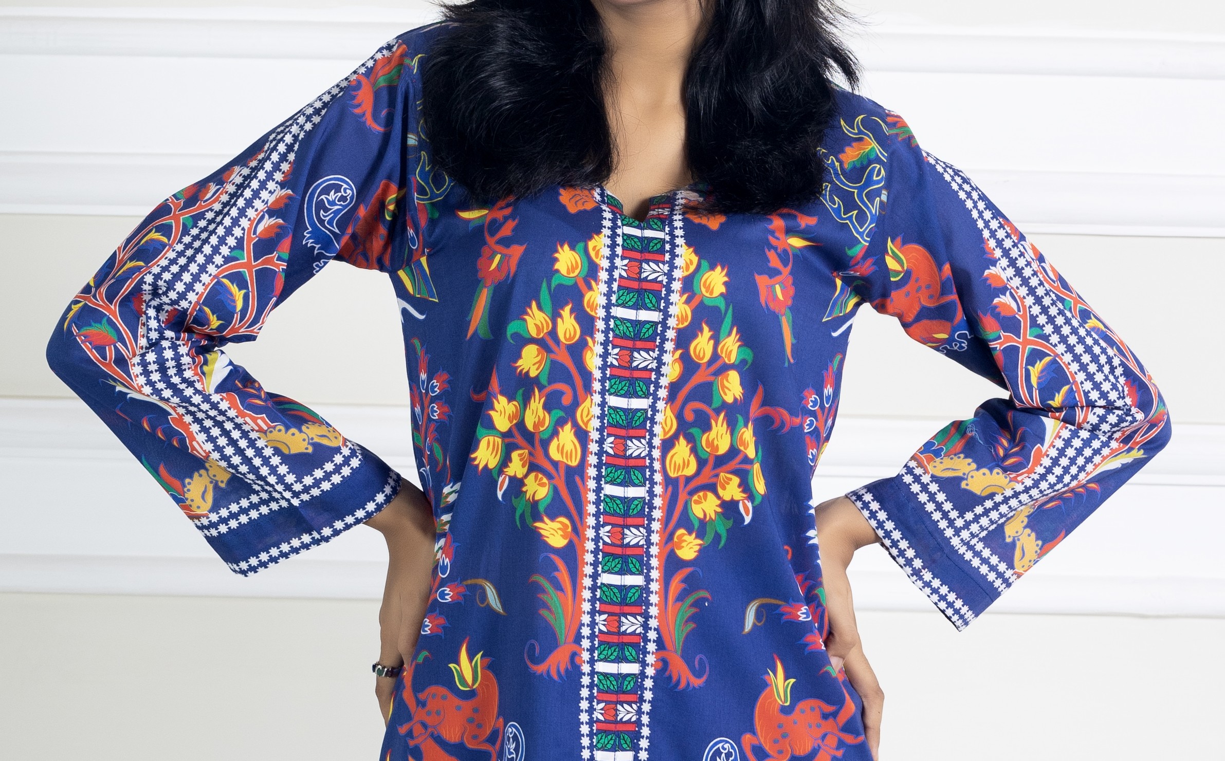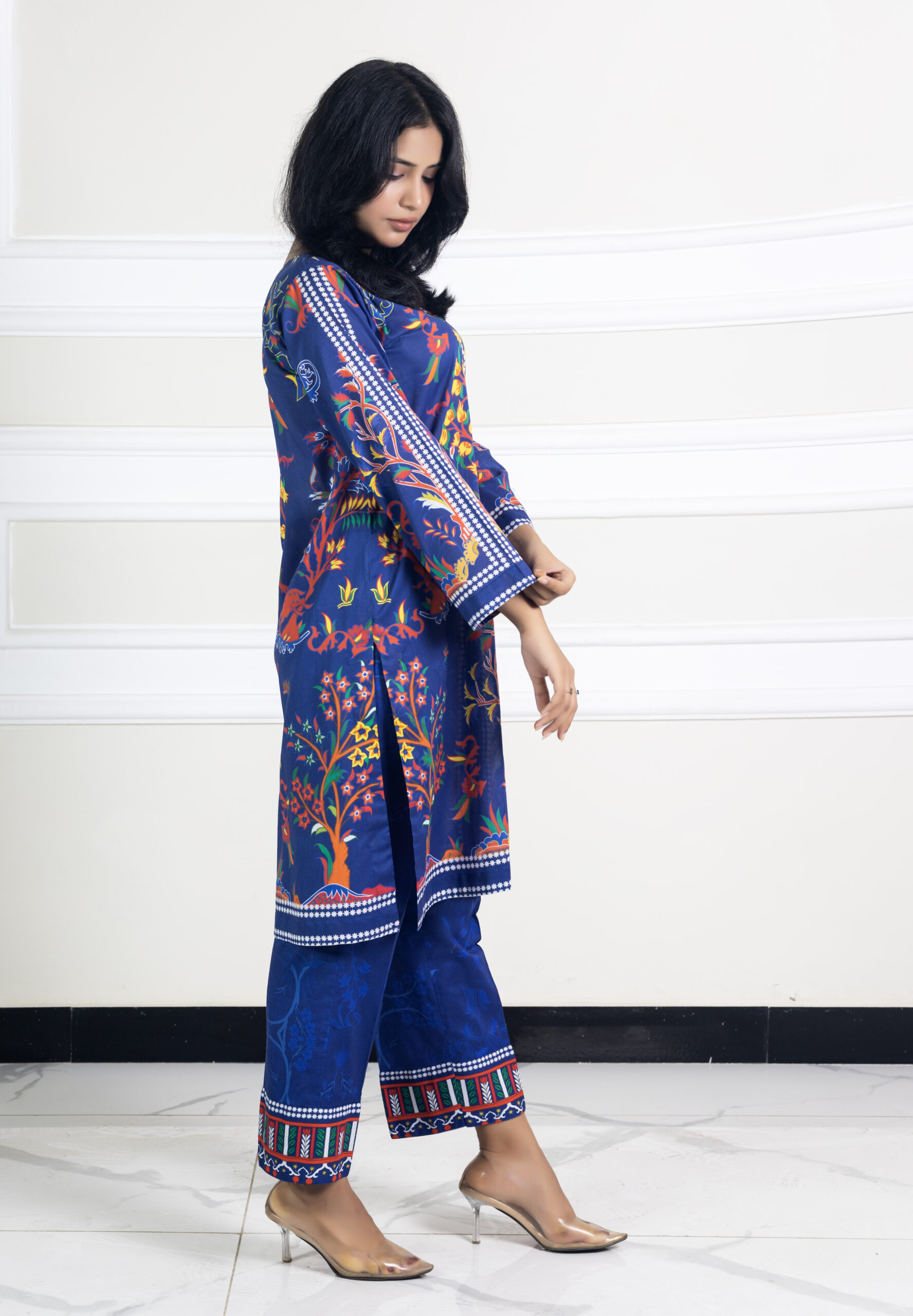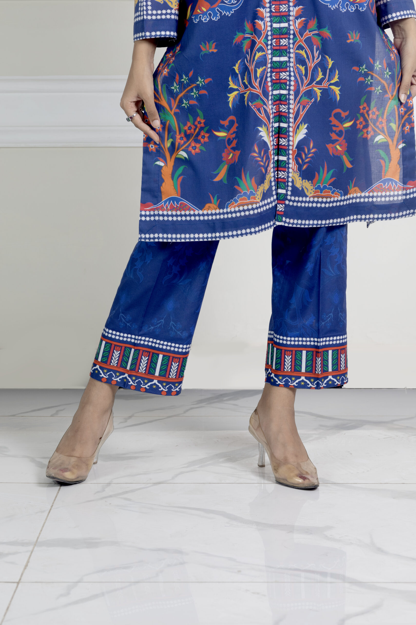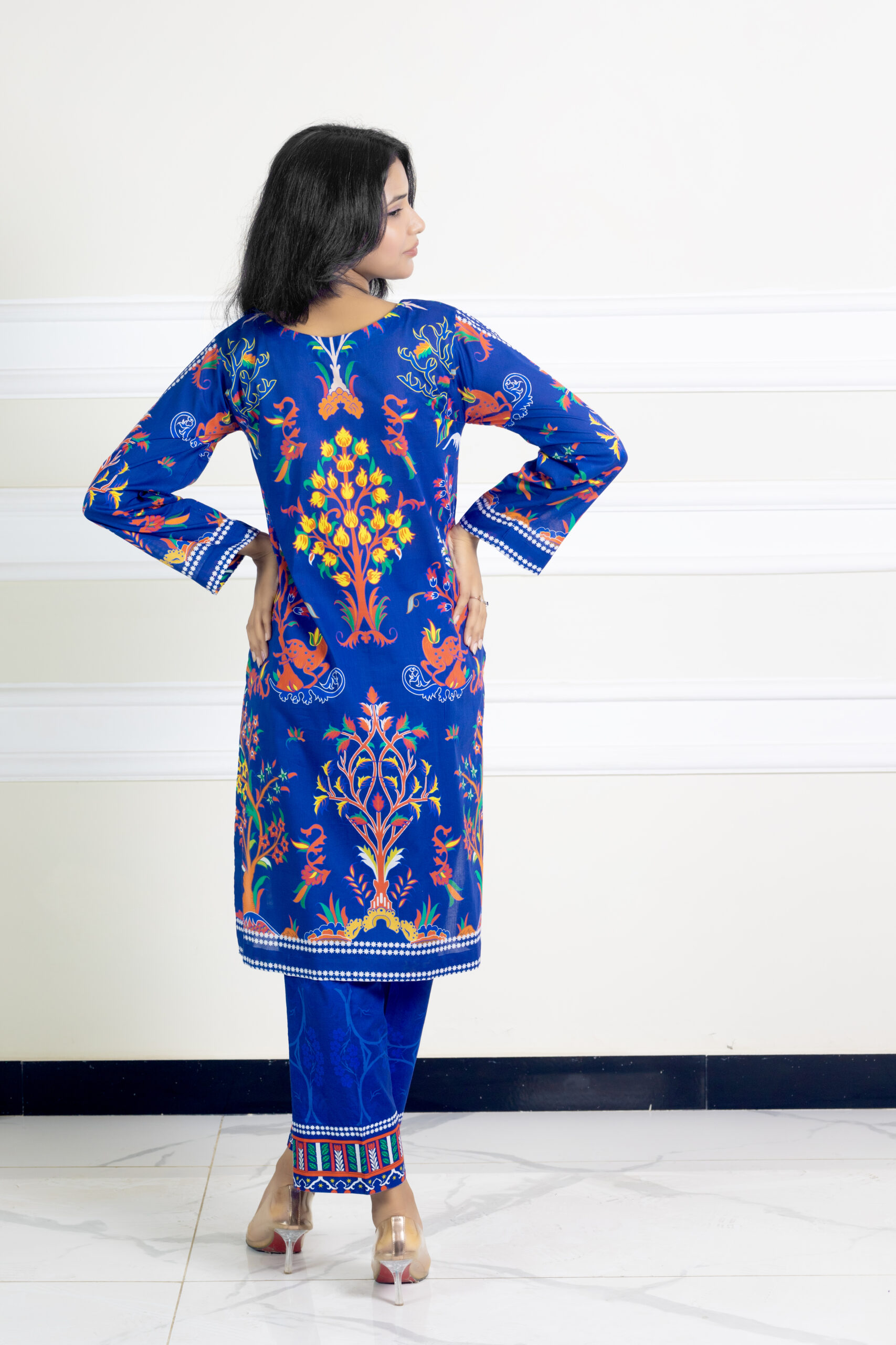stitched two-piece suit offers a flattering, ready-to-wear fit with a straight-cut kurti and coordinating trousers. Perfect for cultural events, relaxed day gatherings, or simply bringing a touch of vibrant charm to your everyday wardrobe, this