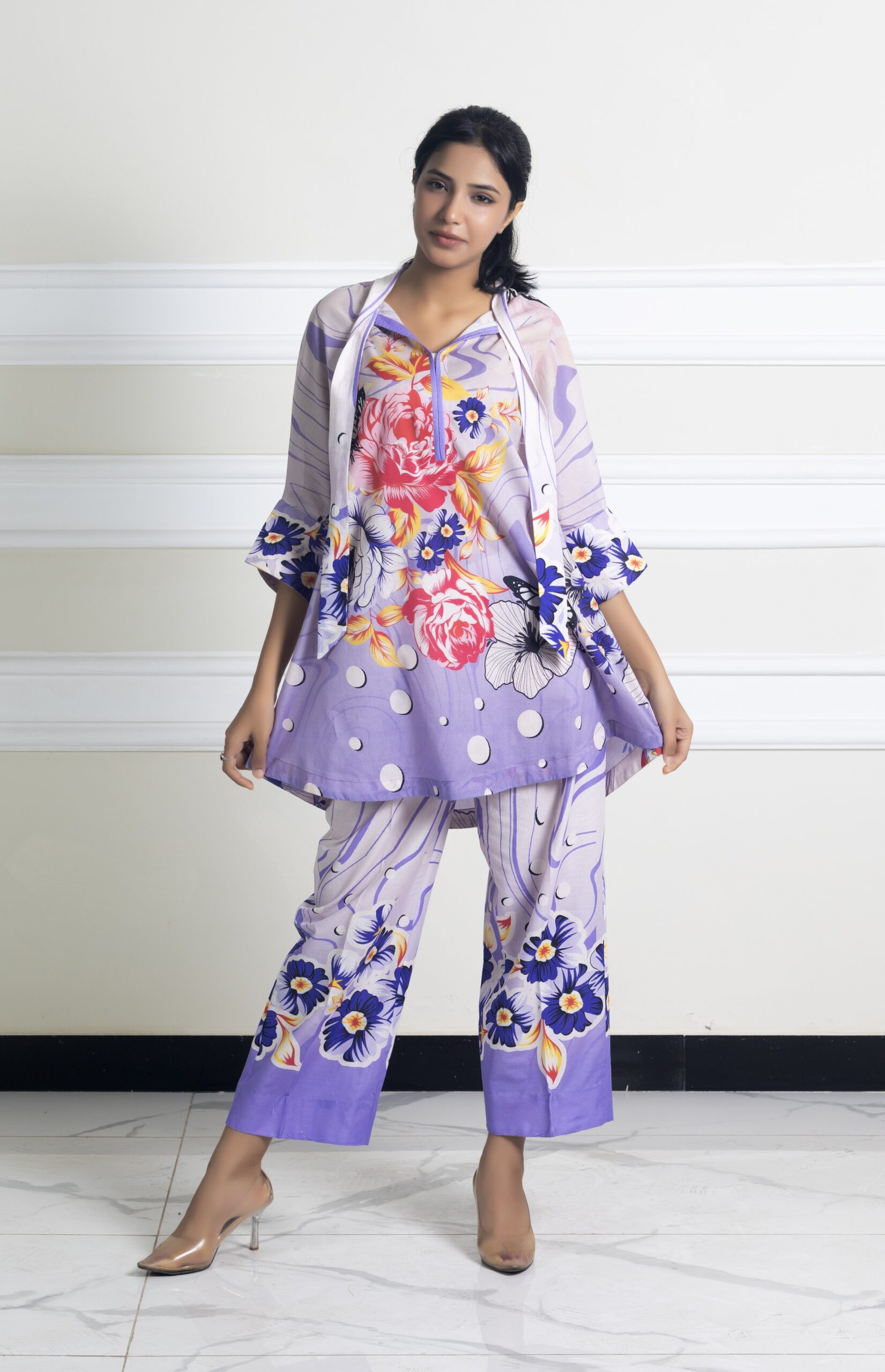 Meri Lado 3 Piece Luxury Printed Lawn Suit. This captivating ensemble showcases a soft, gradient