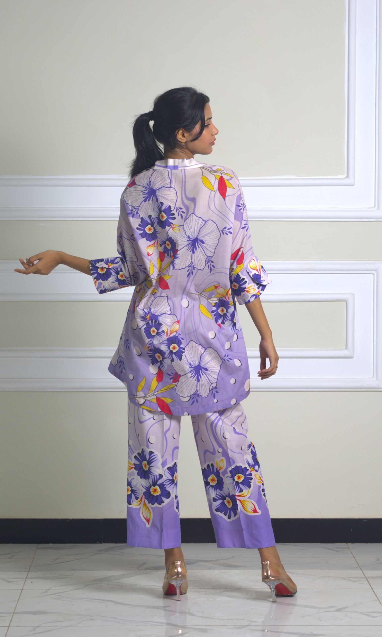 lilac base that beautifully transitions, adorned with a vibrant array of
